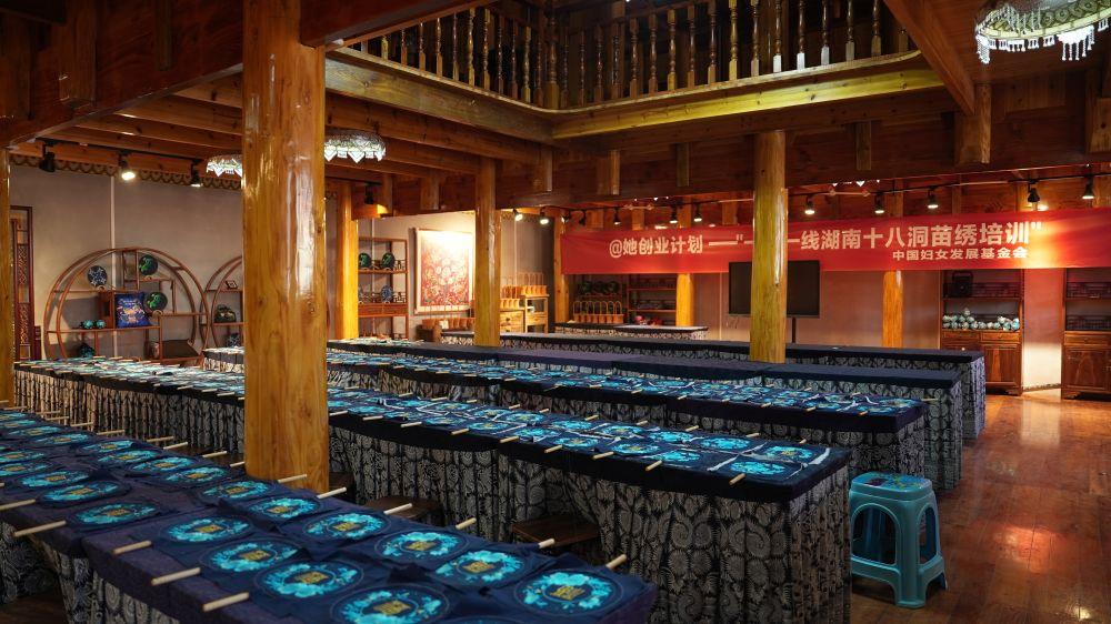 她所在的马鞍村“十八洞片区苗绣乡村振兴示范基地”采取“合作社+公司”模式,将传统纹样融入现代审美,开发了服饰、文创等各类产品。近年来,基地又与故宫博物院及网络红人等合作,积极开拓北美、非洲销售渠道,带动周边562名和吴满金一样的苗族妇女实现“带着娃、绣着花,养活自己又养家”。