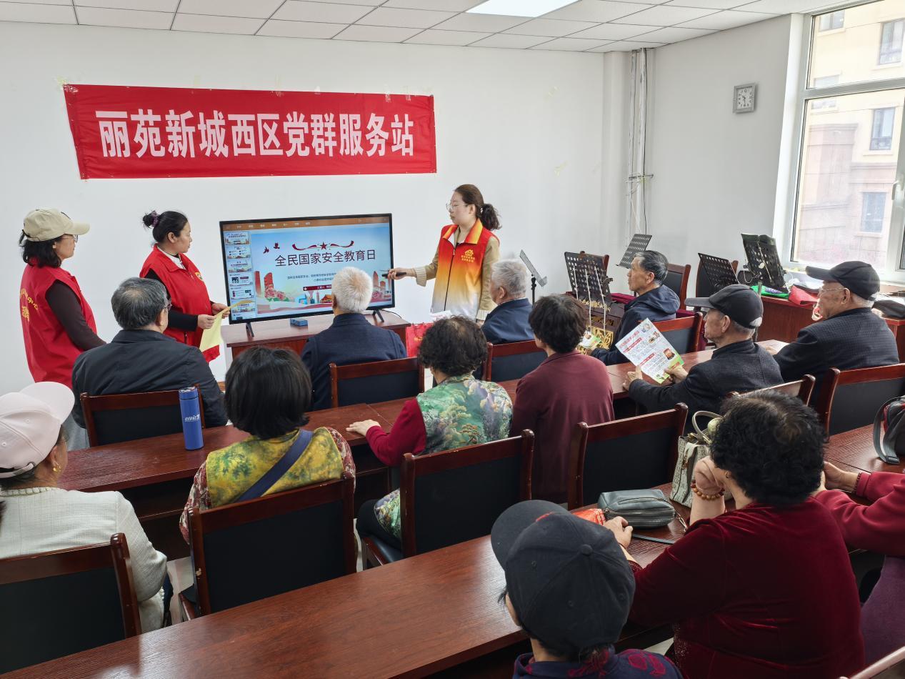 水母网4月14日讯(通讯员 王雷 韩佳利)在第八个全民国家安全教育日来临之际,为切实提升辖区老年群体的国家安全意识、风险防范能力及数字素养,丽苑新城西区党群服务站联合金太阳志愿组织,创新采用“线上+线下”联动模式,精心开展国家安全主题宣传活动。