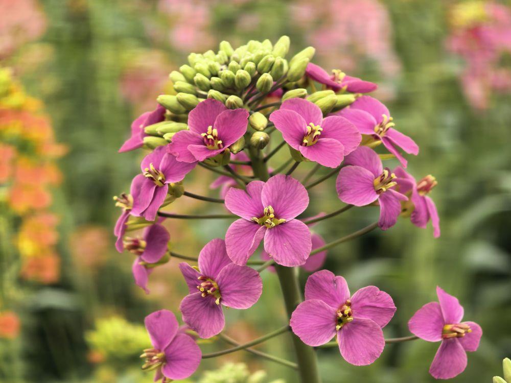 会不会让蜜蜂“认生”、影响授粉?这一点也不用担心。虽然黄色是油菜花的“流量色”,但粉色、紫色也格外受蜜蜂等昆虫喜爱。不同花色油菜的授粉、结实均处于正常水平,它们也不会影响普通油菜的授粉、结实。
