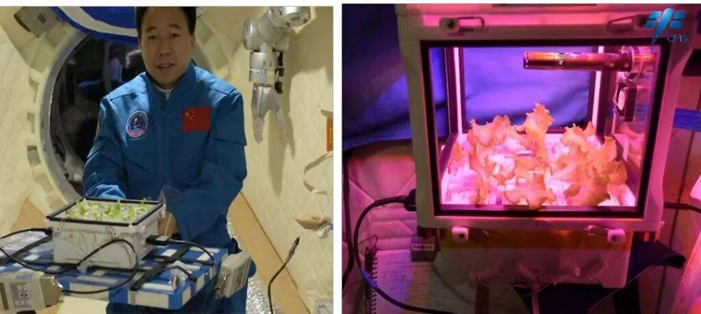 9月10日中秋节当天,乘组迎来了一份特别的“加菜”——他们携带的菜种经过近三个月的种植培养,长成了两株绿意盎然的“太空生菜”。