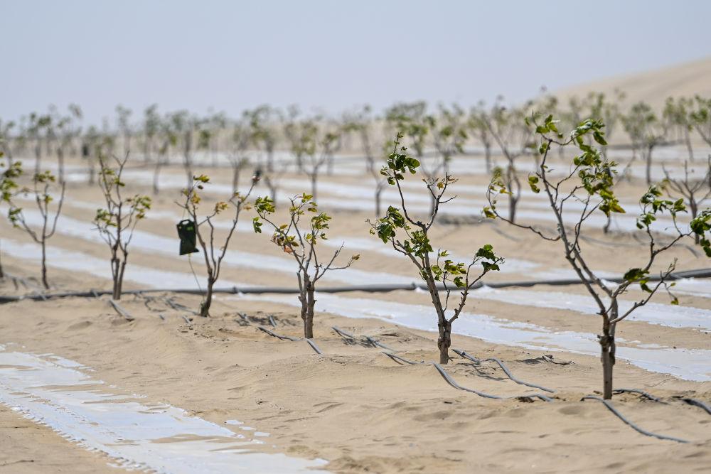 这是在新疆和田地区和田县三万亩群众防沙治沙区拍摄的开心果树(4月16日摄)。 新华社记者 丁磊 摄