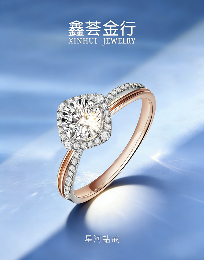 星河钻戒以繁星为灵感,群钻点缀如星河闪耀,将星空的浪漫融入指尖,见证每一段璀璨爱恋。