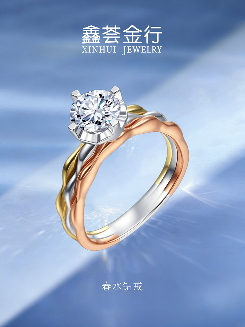 其中,克拉致美春水以水波纹质感打造流畅戒臂,宛如一汪春水流淌至爱人心中,将钻石的璀璨与柔情完美融合。