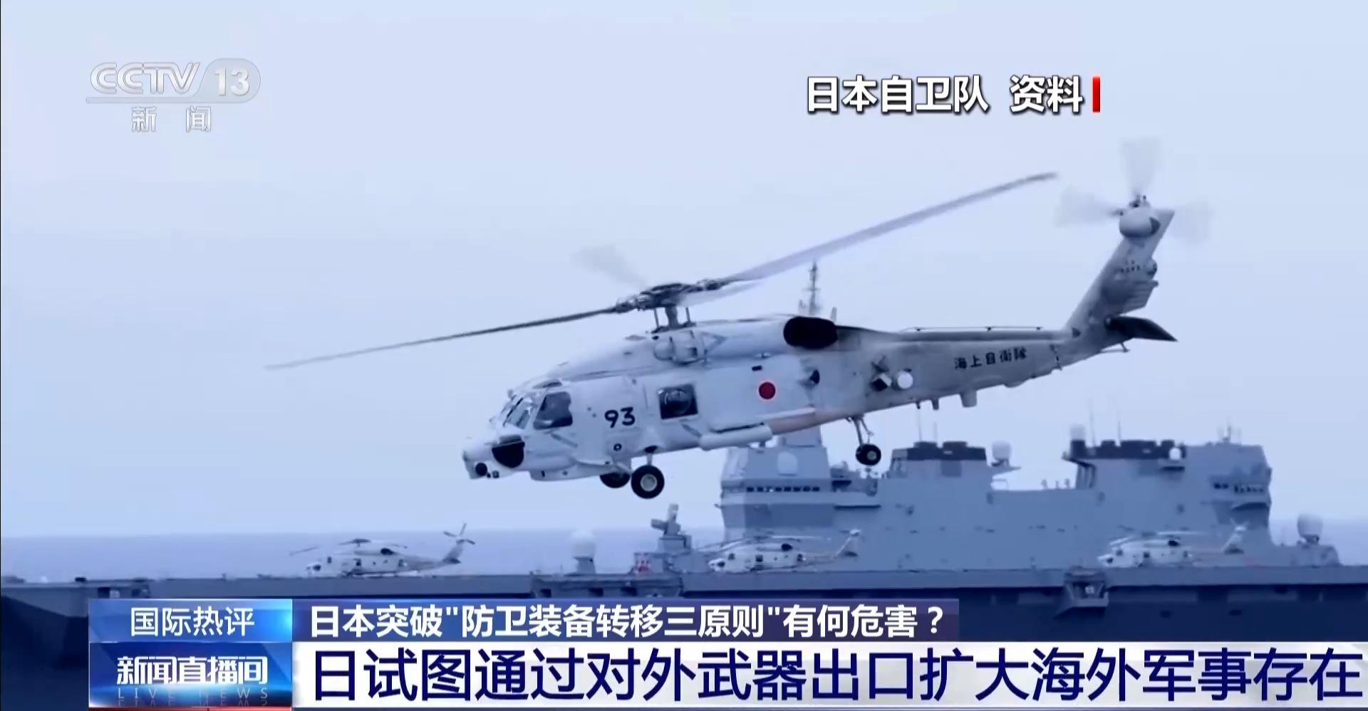 中国国际问题研究院亚太研究所特聘研究员 项昊宇:日本这一动作酝酿已久,现在正式落地,这标志着二战后日本国家防卫安全政策的重大转型。这是日本背离“专守防卫”原则、突破战后和平体制、加速在军事化进程的又一个关键步骤。这次的政策调整取消了此前将武器出口限定在非战斗用途的核心限制,将坦克、战机、导弹等致命武器装备纳入原则上允许出口的范围,并且设立了例外条款:允许向冲突中的国家进行武器出口,并且出口的决策审批权限集中于首相等少数核心高层,不需要国会事先审议和批准,程序门槛显著降低。