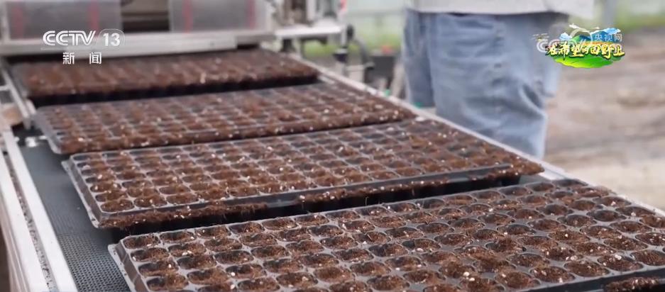那么,如何保障种苗基地一年四季都能正常进行育苗呢?探访的过程当中记者了解到,育苗基地采用了多种科技手段来帮助种苗的生长。全自动的精量播种机正在进行作业,这样的一台播种机只需要3个人来进行操作。在过去,单纯使用人工,完成同样数量的种子播种,需要30多人干1天才能完成。通过使用农业机械,作业效率提高了10倍,劳动强度也大大降低。