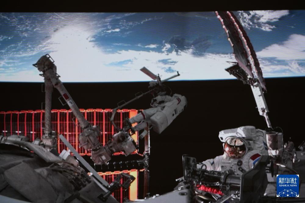 2024年5月28日在北京航天飞行控制中心拍摄的神舟十八号航天员叶光富在空间站组合体舱外作业的画面。新华社记者 李杰 摄2024年10月30日