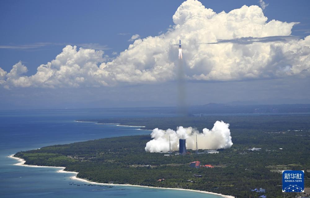2022年7月24日14时22分,搭载问天实验舱的长征五号B遥三运载火箭,在我国文昌航天发射场准时点火发射,约495秒后,问天实验舱与火箭成功分离并进入预定轨道,发射取得圆满成功。新华社记者 李刚 摄