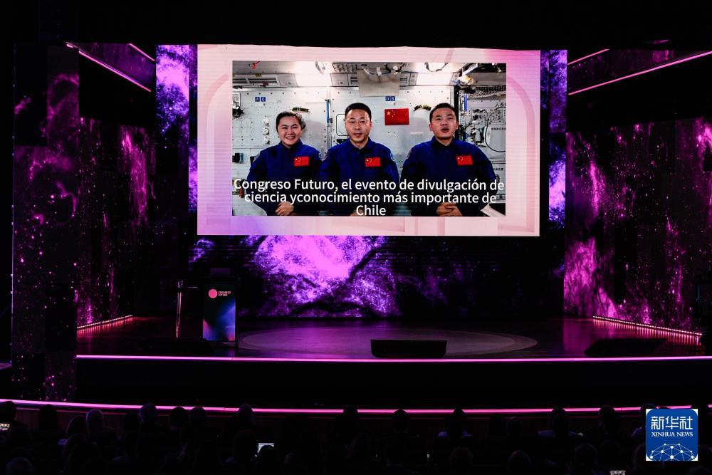 2025年1月13日,智利第十四届“未来大会”开幕式在首都圣地亚哥旧国会大厦内举行,神舟十九号乘组通过视频送上祝福,预祝大会取得圆满成功,并表达了中国和智利及拉美携手探索宇宙奥秘的美好愿望。新华社发(豪尔赫·比列加斯 摄)2025年4月24日