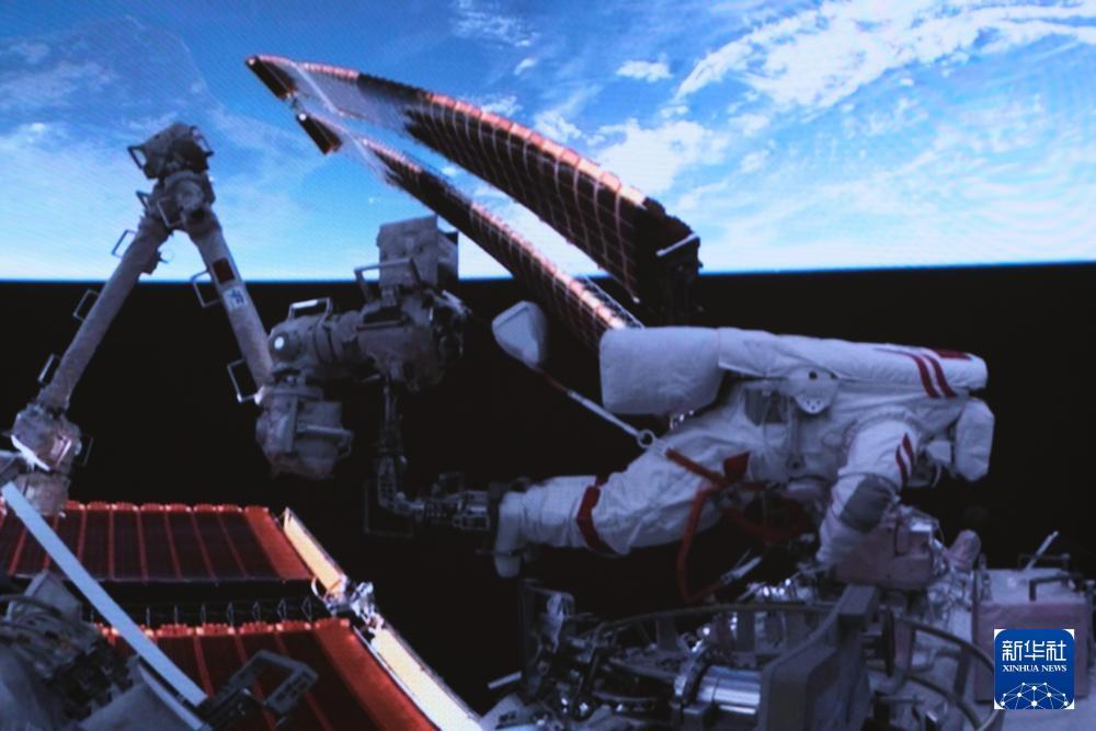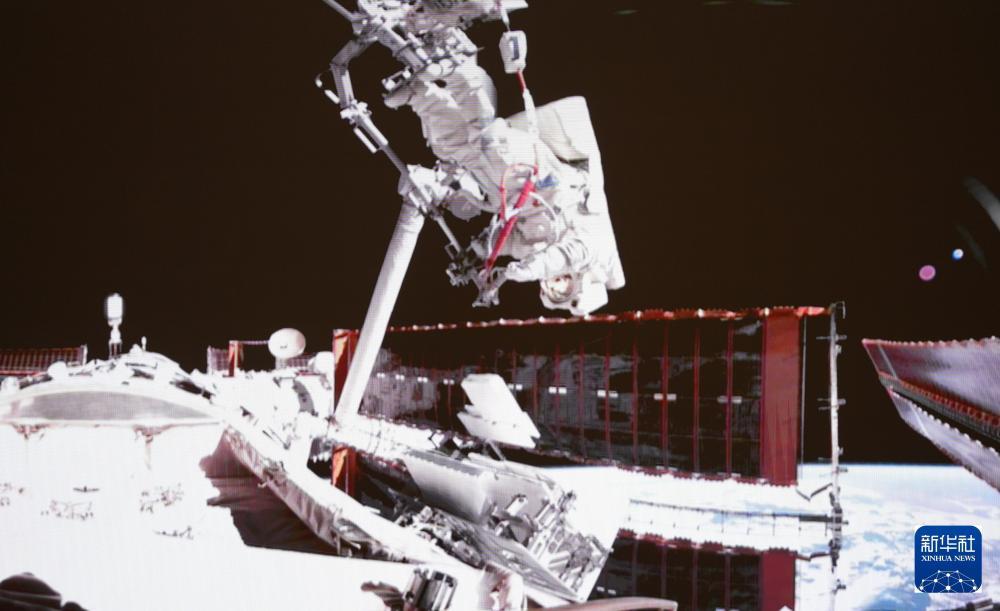 这是2026年4月16日在北京航天飞行控制中心屏幕上拍摄的神舟二十一号乘组航天员武飞在舱外工作的画面。4月17日01时36分,经过约5.5小时的出舱活动,神舟二十一号乘组航天员张陆、武飞、张洪章密切协同,在空间站机械臂和地面科研人员的配合支持下,圆满完成空间碎片防护装置安装、舱外设备设施巡检等任务。出舱航天员张陆、武飞已安全返回问天实验舱,出舱活动取得圆满成功。新华社发(张帆 摄)从“东方红一号”
