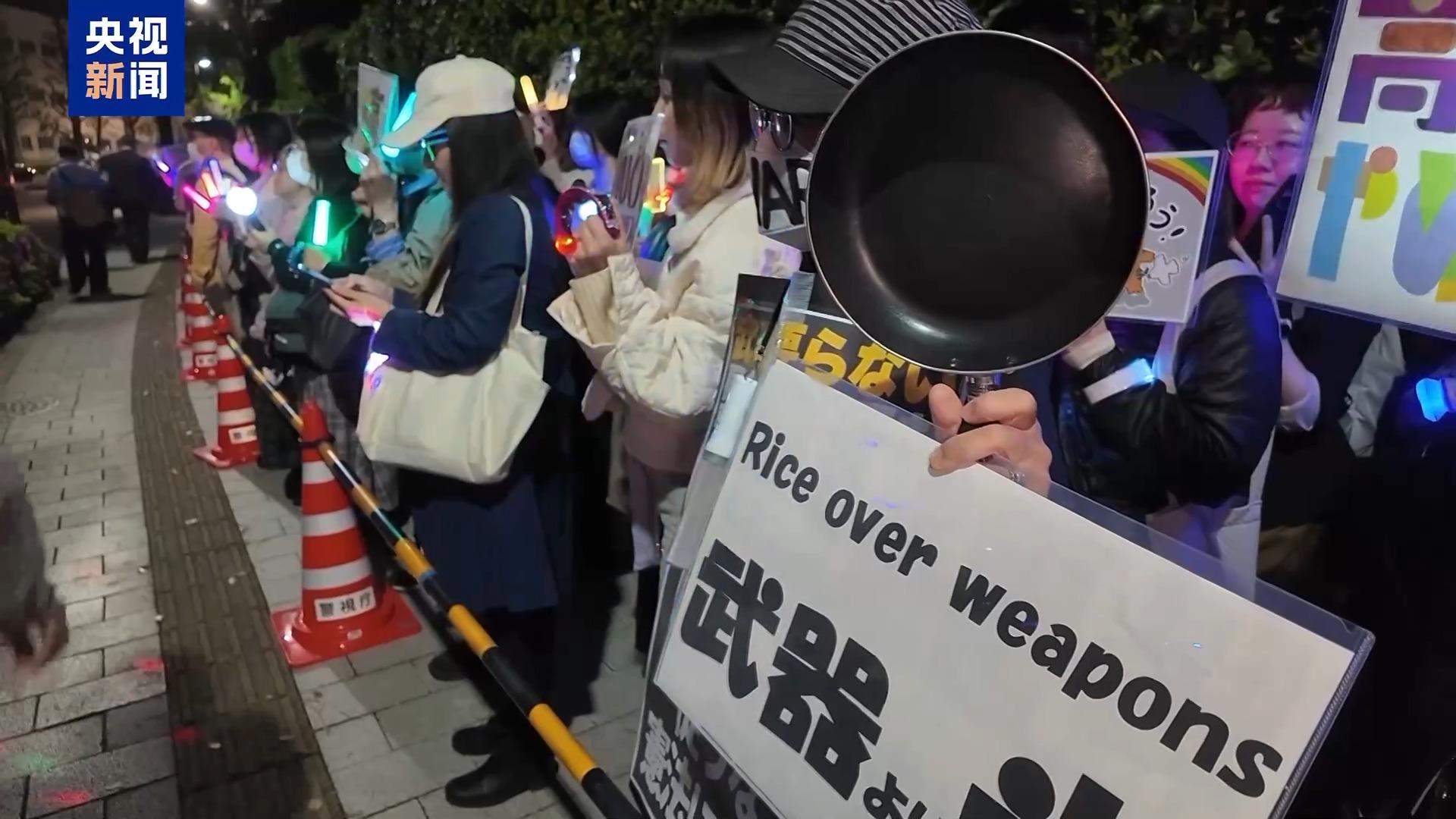 总台记者 刘耀鸿:近期,越来越多日本民众开始走上街头,他们以集会抗议、街头发声等方式,来表达对日本政府推动扩军修宪、解禁杀伤性武器出口等相关政策的强烈反对与不满。
