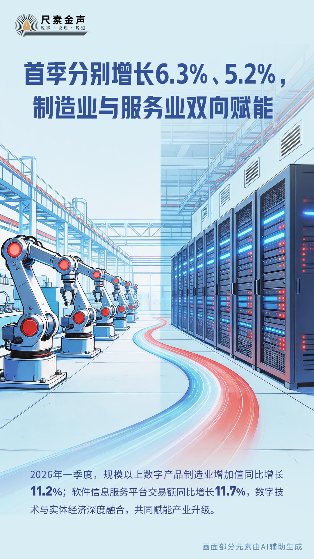再看微观层面,一季度,规模以上数字产品制造业增加值同比增长11.2%;软件信息服务平台交易额同比增长11.7%,数字技术与实体经济深度融合,共同赋能产业升级。