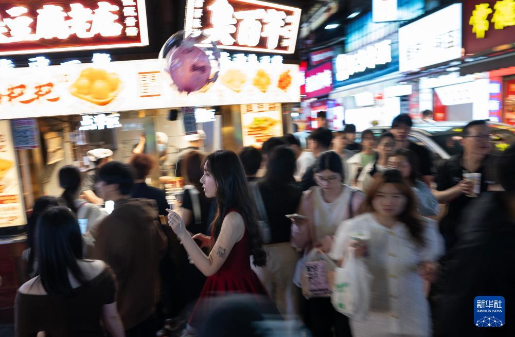 夜幕下的湖南长沙,灯火璀璨、人流涌动……网络直播、乐队演出、古装摄影、红色旅游、夜市小吃等多元业态交织成景,折射出这座“不夜城”持续释放的消费活力。