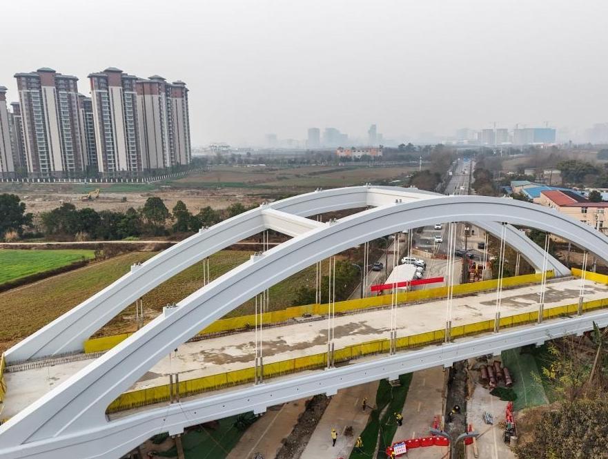 成渝中线高铁龙泉特大桥系杆拱施工完成