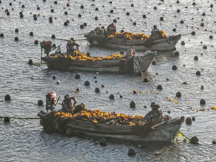 山东荣成:18万亩海带进入间割收获期